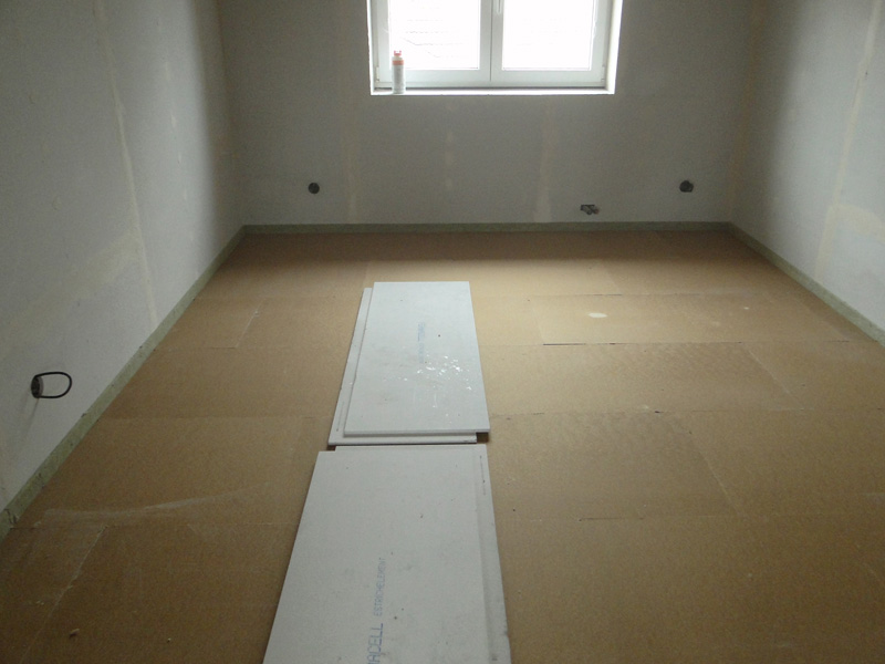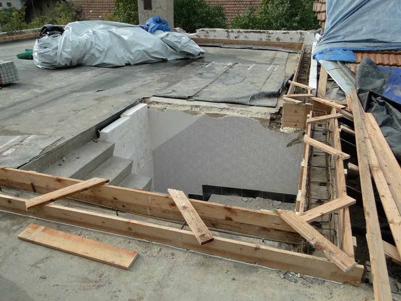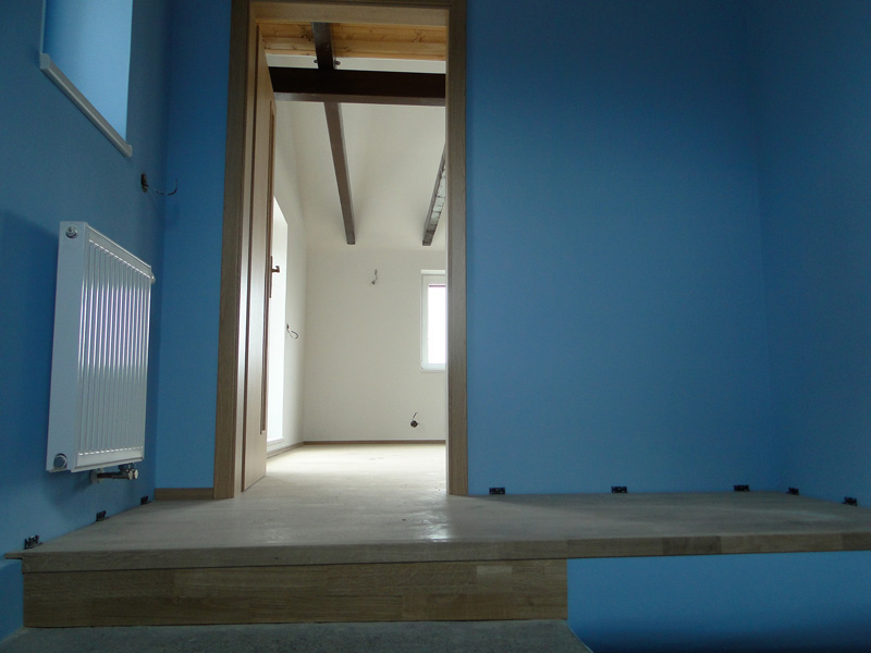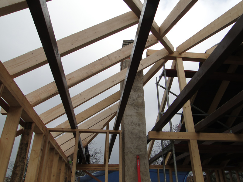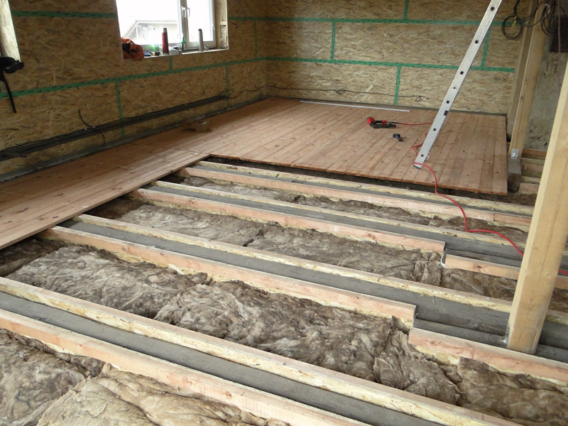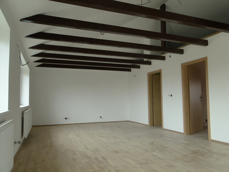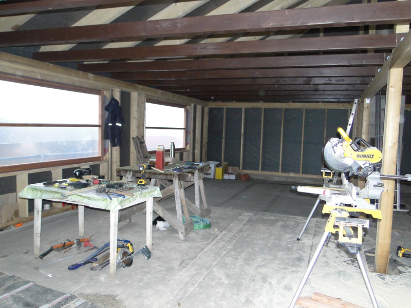 Rámová dřevostavba podkroví s izolací z minerální vaty.